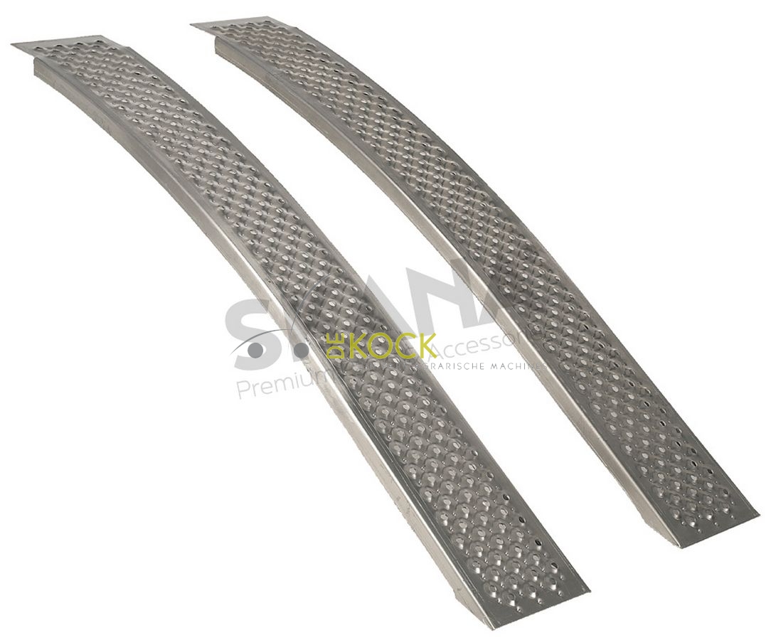 Paar gebogen oprijplaten uit aluminium.